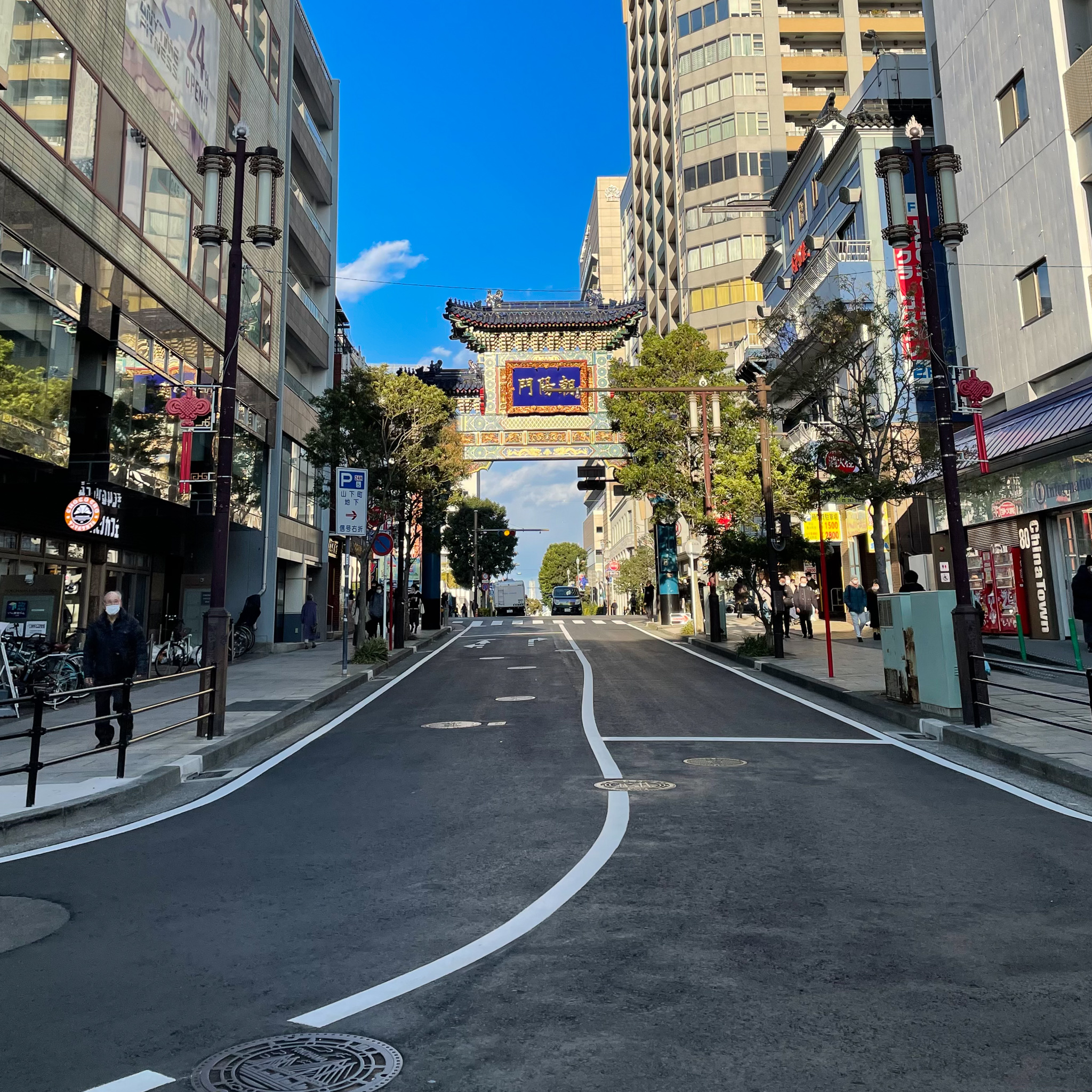 中華街から山下公園に向けて撮った朝陽門と、元町から撮った朱雀門です。