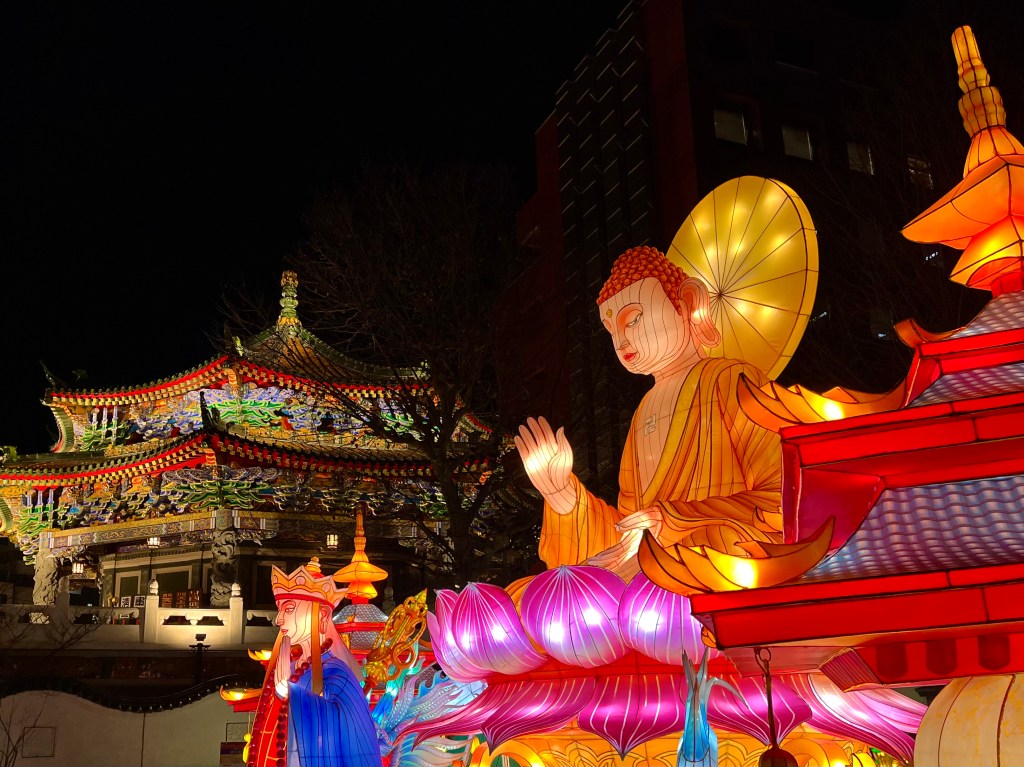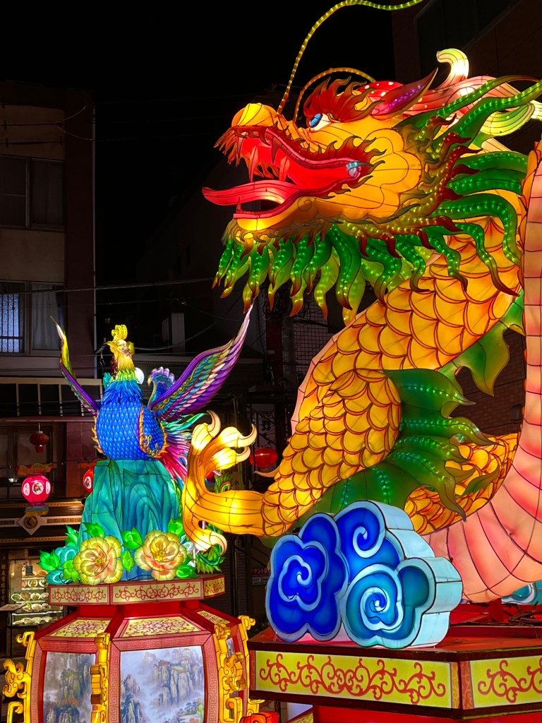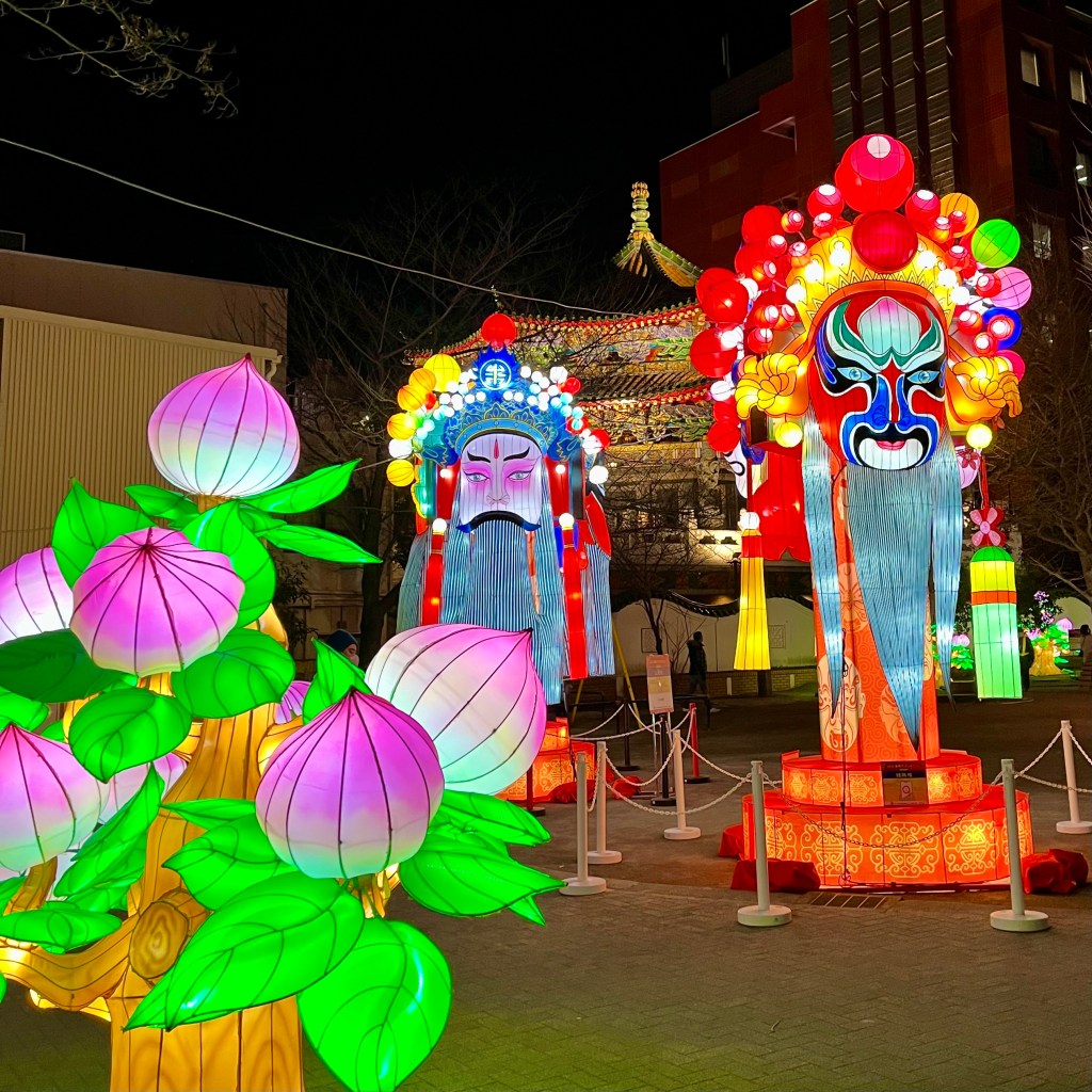 中華街では春節(旧正月)に合わせて「ランタンオブジェ」が山下町公園に設置されています。1月29日(金)まで。
